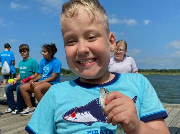 Youth are paired one-on-one with a volunteer camp counselor, and together they participate in adaptive sports like tennis, basketball, fishing, kayaking and golf.